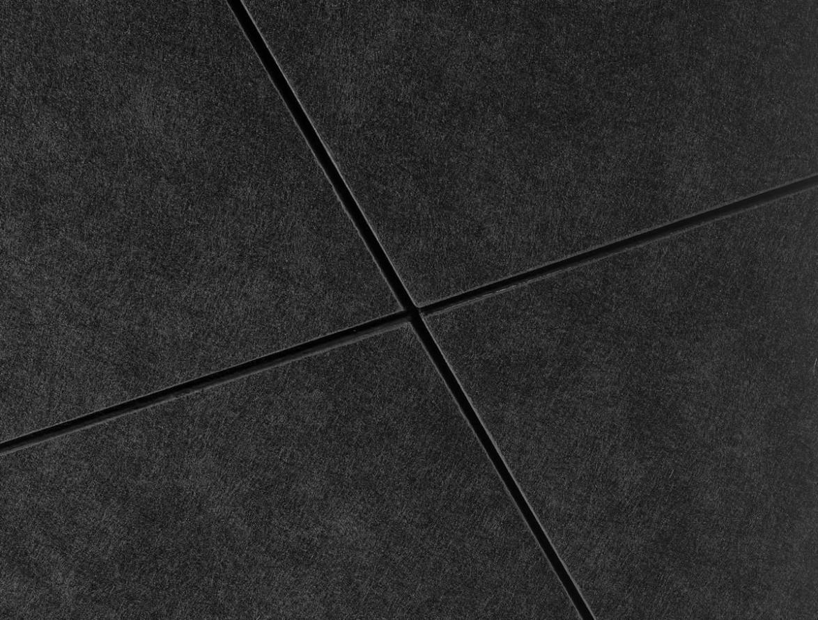 Die Sombra™ Oberfläche besteht aus einem mattschwarz eingefärbtem Vlies. Die Rückseite der Absorber ist mit einem Vlies versehen und die Kanten sind unbehandelt. Sombra™ ist eine bewährte Akustiklösung für Kinos, Bars und Nachtclubs.